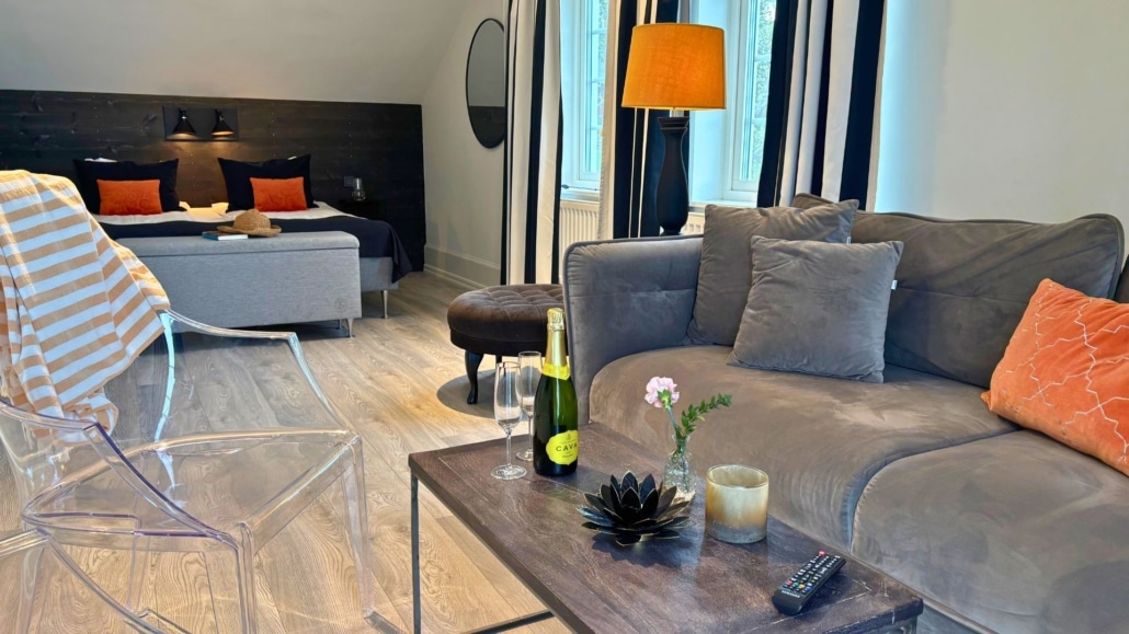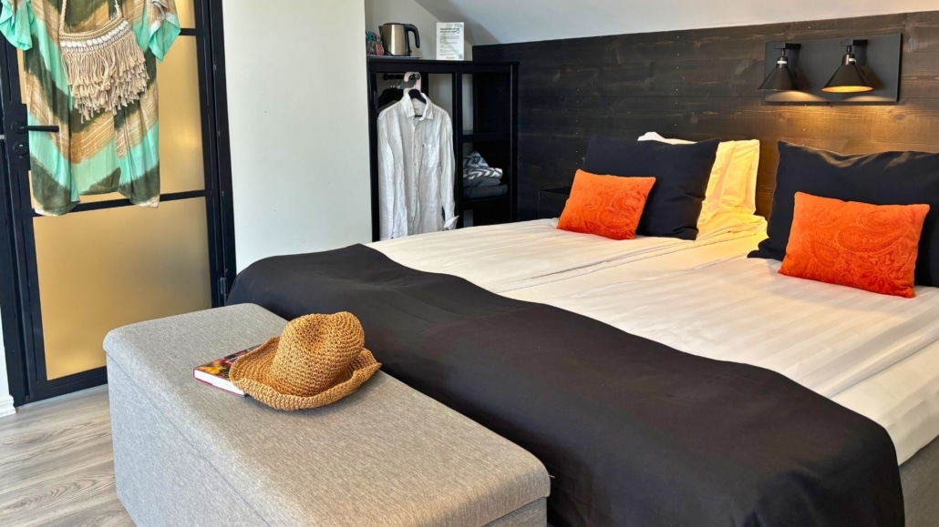 Kallenbergs Villa is a new hotel near Visby, at Kneippbyn Resort. It is beautifully decorated with lovely, brand new rooms, large fluffy duvets, and delightful hotel pillows. Outside the hotel room, there is a balcony with outdoor furniture and a lovely evening view. Most of the rooms have an irresistible view of the Summerland and out over the sea with the horizon as the final destination.