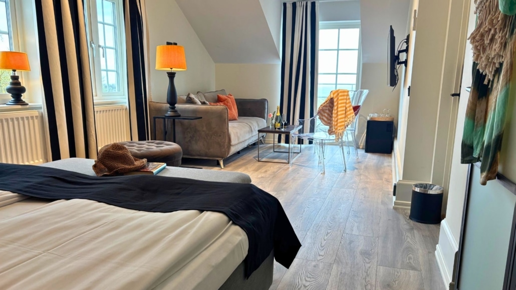The sunsets here are jaw-dropping, and a delightful calm sets in. The hotel has nine modern rooms in different sizes. Downstairs, you’ll find excellent conference facilities. Rustic glass partitions with tastefully selected conference furniture lay the foundation for a lovely conference.