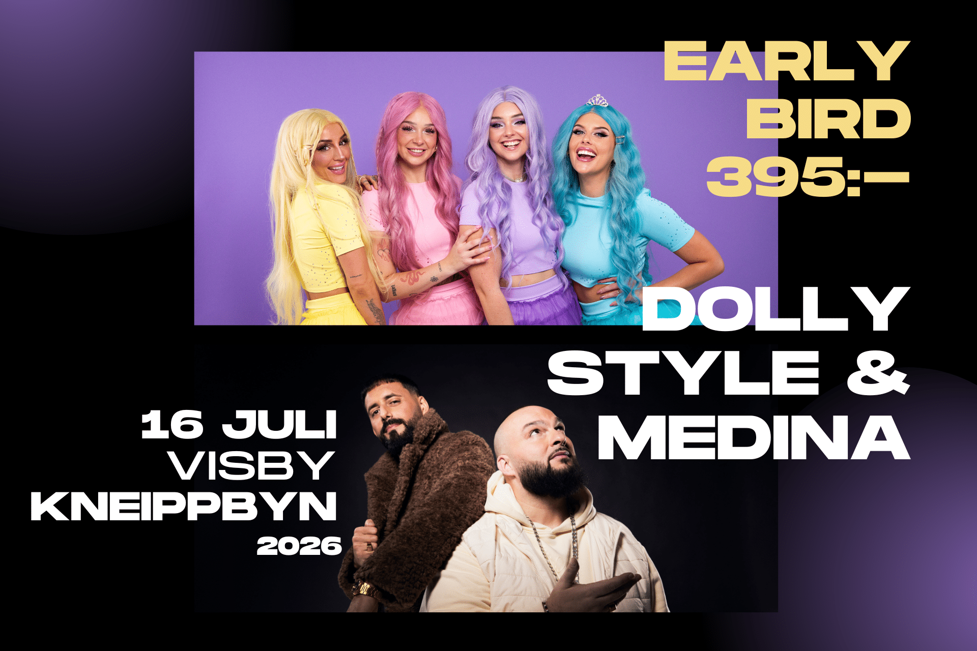 Den 16 juli exploderar Kneippbyn av musik, glädje och allsång när storfavoriterna DOLLY STYLE och MEDINA intar den stora scenen!